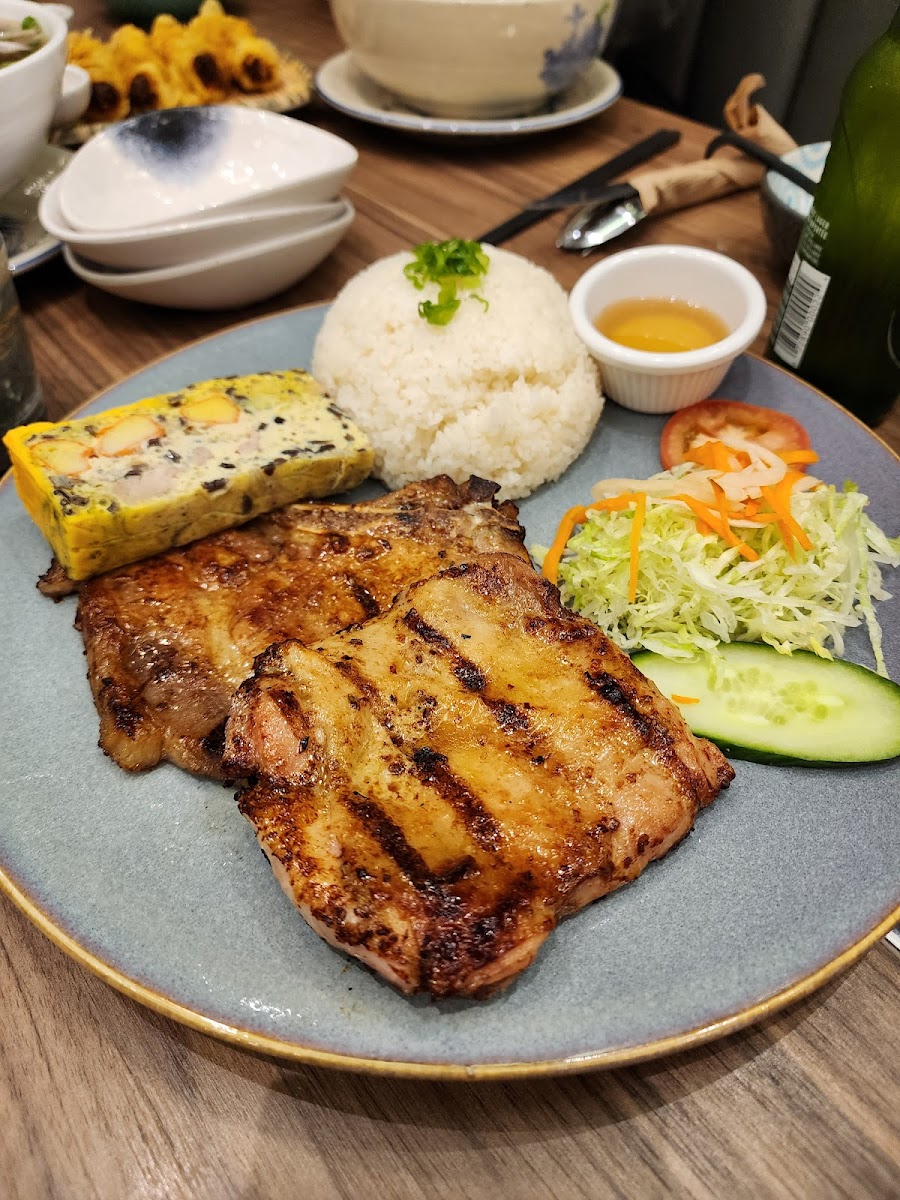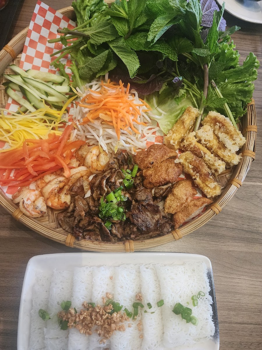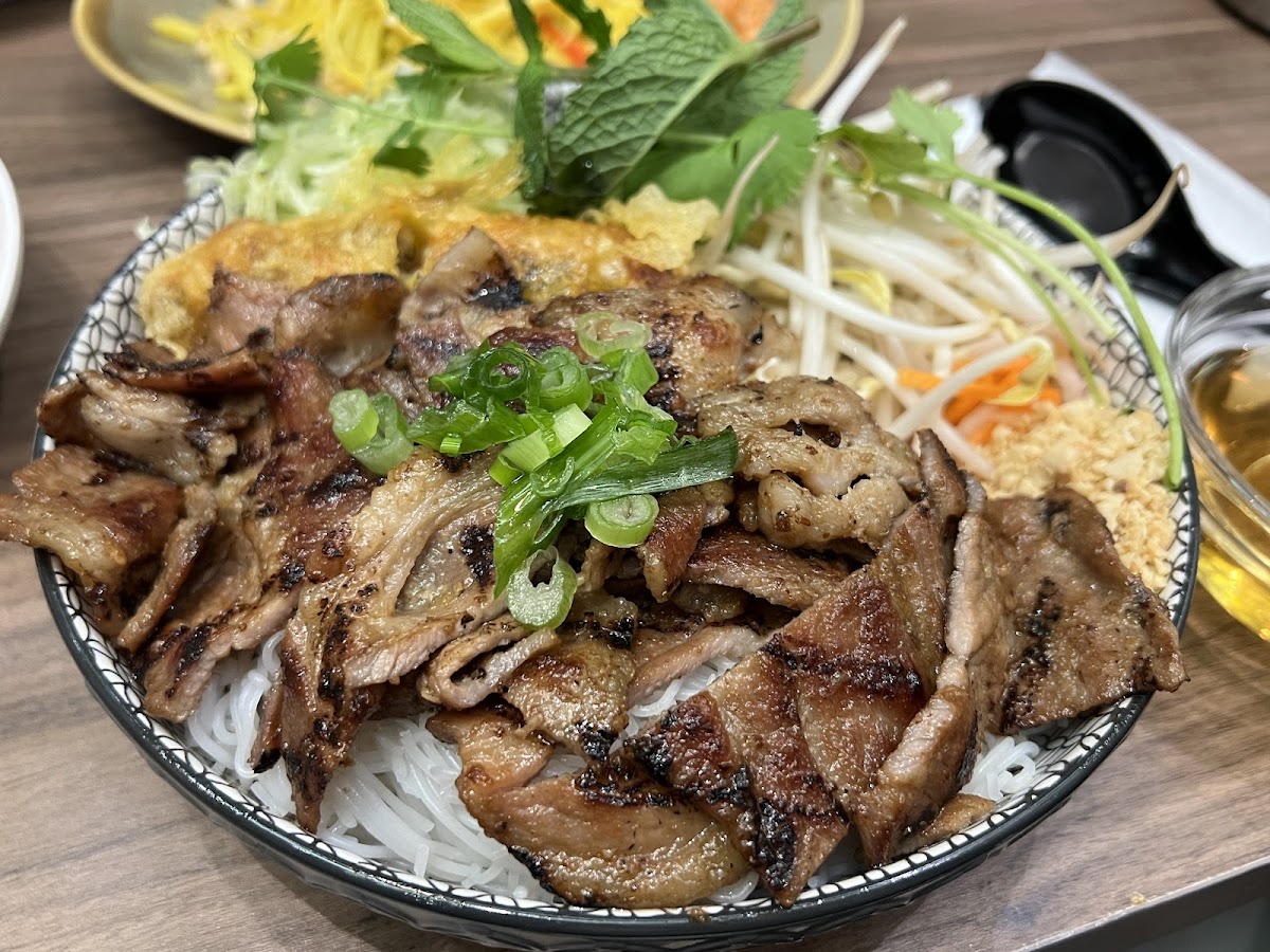 Grilled Pork with Fried Spring Roll and Vermicelli is a reliable classic. The combination of smoky pork, crisp spring rolls, and cool noodles creates a satisfying contrast of textures. Fresh herbs and light dressing bring everything together without heaviness.